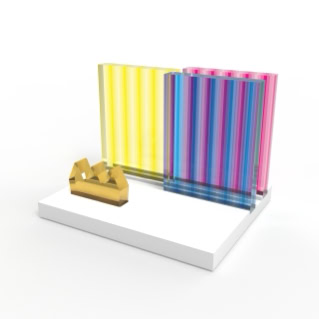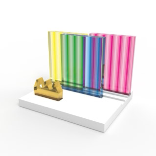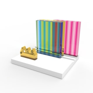 Introducing my latest limited edition object, a dynamic exploration of animated color. Comprising three PMMA blocks, users can rearrange them to mimic the captivating effects of the Night Prince’s Revelry holiday display on Nicollet Mall. This interactive pieces engage viewers in the creative process with every shift, revealing a spectrum of colors, movement, and light variations. This playful color mixing table top artwork serves as a testament to my architectural investigation.